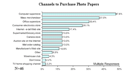 調(diào)查機(jī)構(gòu)發(fā)現(xiàn):用戶購買照片墨水和介質(zhì)的渠道有較大區(qū)別,雖然電腦超市都是用戶最常去的場所,但墨水的銷售很多是通過Internet和大型超市實(shí)現(xiàn)的,而介質(zhì)通過Internet網(wǎng)的銷售方式僅排第5位,大量用戶選擇在大型超市、辦公品商場購買。用戶選擇在辦公品商場購買墨水的比例僅占9.3%。上述區(qū)別的原因可能是:用戶對墨水品質(zhì)保證的關(guān)注程度高于介質(zhì),顯而易見相比于介質(zhì),墨水對打印機(jī)可能能造成更大的傷害。