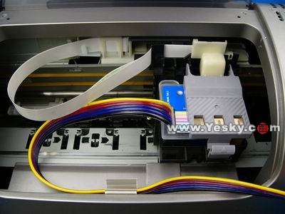 這是目前無(wú)海綿連續(xù)供墨系統(tǒng)最理想的走線方式,設(shè)計(jì)為一體,接頭在墨盒表面蓋子的下面,美觀大方
